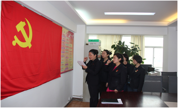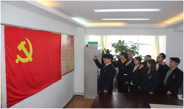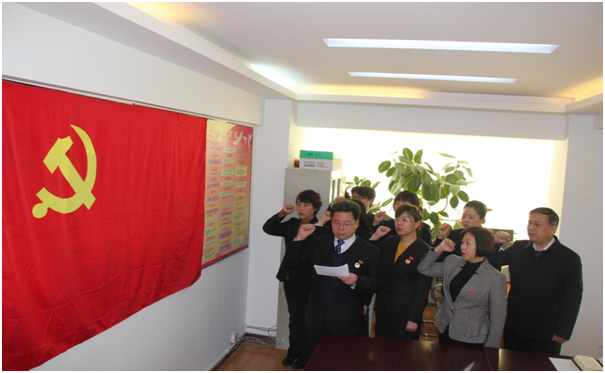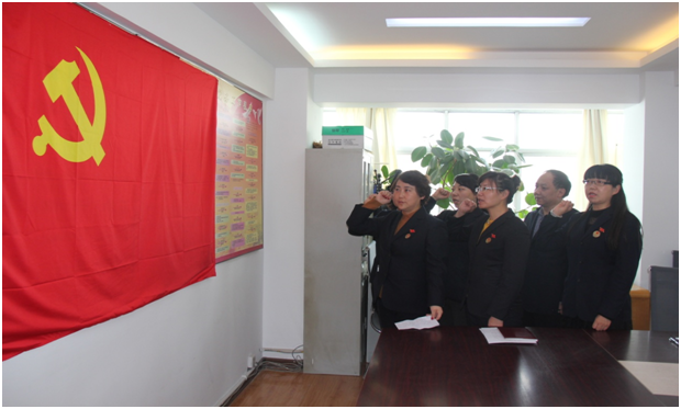 出席會(huì)議的領(lǐng)導(dǎo)和國(guó)信公證處黨支部班子成員共同面向黨旗宣誓。