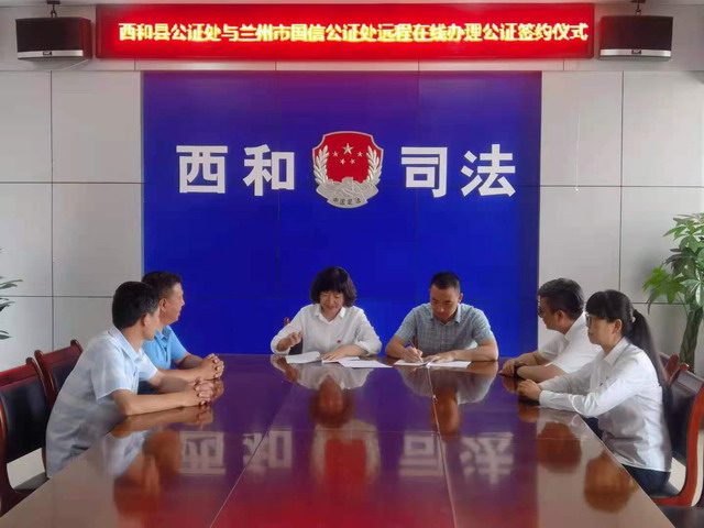 國信公證積極融入甘肅公共法律體系建設,解決省內(nèi)公證法律資源不均衡、不匹配,滿足公共法律服務均等化的的問題,分別和禮縣公證處,西和公證處簽訂遠程辦證協(xié)議,滿足當?shù)乩习傩展C法律服務需求?。?!