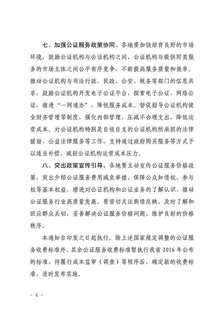 第四條 公證服務(wù)收費標(biāo)準(zhǔn)按價格管理權(quán)限,由省級價格主管部門會同同級司法行政主管部門制定。