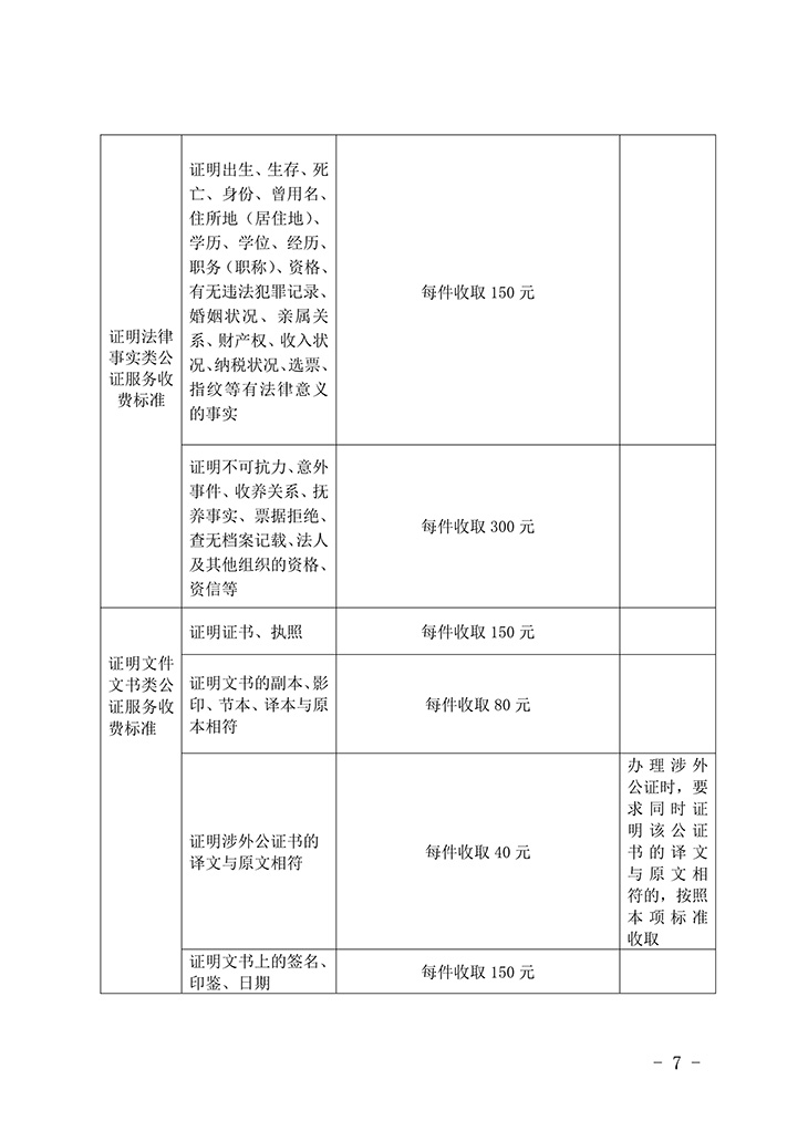 第七條 公證機(jī)構(gòu)辦理下列公證事項和事務(wù)的收費實行政府定價。