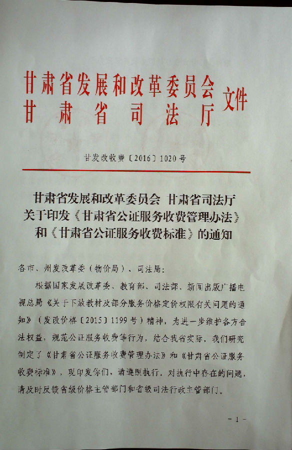 甘肅省公證服務(wù)收費標(biāo)準(zhǔn)